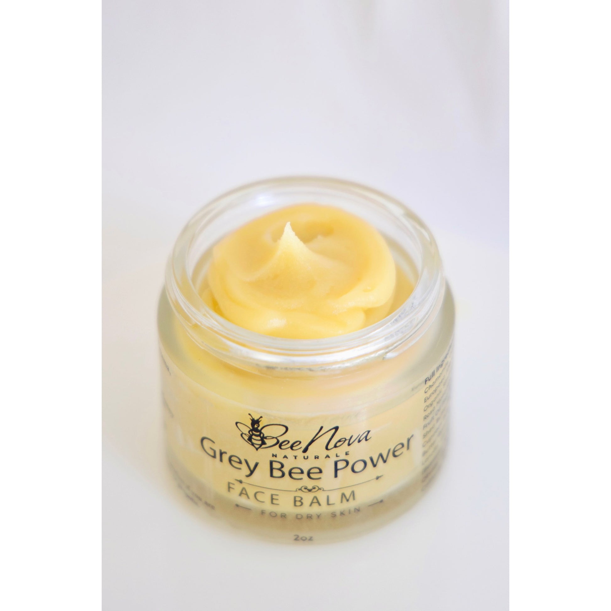 Grey Bee Power Updated Ingredients: Cera Alba (Beeswax) Olive Squalane, Ribes Nigrum(Black Currant Seed Oil), Carthamus Tinctorius (Safflower Oil), Oenothera Biennis (Evening Primrose) Oil, Theobroma Grandiflorum (Cupuacu Butter), Rosa Canina Fruit (Rosehip Oil), Cannabis Sativa (Hemp Seed Oil), Emu Oil, Ricinus Communis (Castor Bean), Oleic Acid, Borago Officinalis (Borage Oil), Persea Gratissima (Avocado Oil), Hippophae Rhamnoides (Seabuckthorn Oil), Cocos Nucifera (Coconut Oil), Calendula Officinalis (Calendula) Camellia Oleifera(Camelia), Plantago Lanceolata Leaf (Plantain), Hypericum Perforatum (St. J John’s Wort), Arctium Lappa Root (Burdock), Symphytum Officinale Root (Comfrey) Infused In Olive Oil, Propolis Extract, Chestnut Honey, Manuka Honey, Royal Jelly, Vitamin E. Colloidal Oatmeal, Azadirachta Indica (Neem Oil), Myrica Fruit Wax.