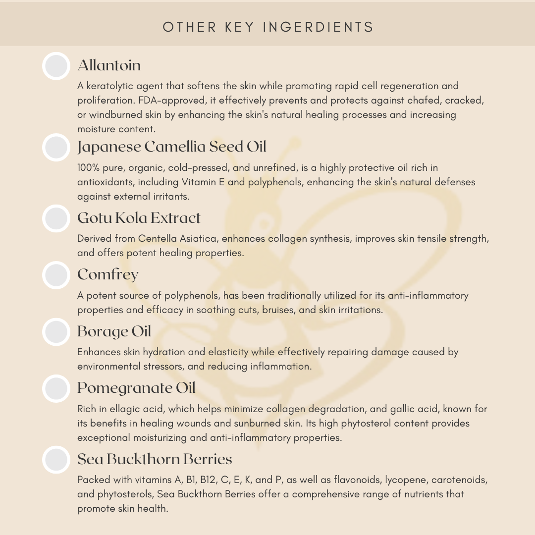 * These Statements Have Not Been Evaluated By The Food And Drug Administration And Are Not Intended To Diagnose, Treat, Cure Or Prevent Any Disease. Always Consult Your Physician. If You Are Sensitive To New Products, Please Spot Test 24 Hours Prior To Application. Do Not Use It If You Notice A Reaction. BeeNova Naturale, LLC Accepts No Liability And Shall Not Be Held Responsible For Any Injuries, Damages, Or Losses Resulting From The Use Of Products Purchased From This Shop.